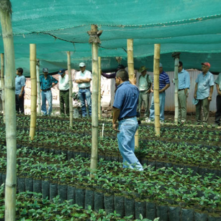 In order to improve household incomes and create wealth in the community , we are supporting small producers in the renovations of their plantations. by providing them cutting-edge genetic material , accompanied with training on best agricultural practices. These practices will result in better productivity , and greater profitability . Our goal is to increase the current average productivity of small farms from 2-3 quintals per acre to 20 quintals per acre.