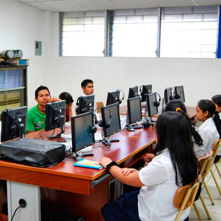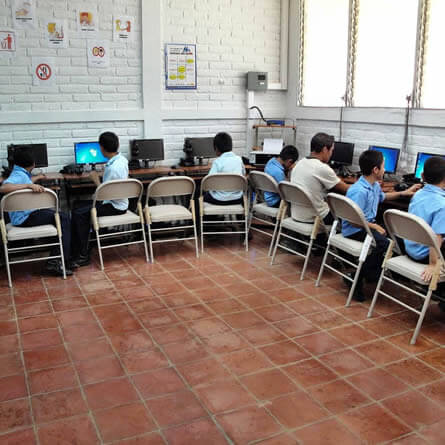 @School Provides advanced education for existing schools established in the communities which did not have computing resource , providing the necessary equipment (hardware , software, and Internet ) as well as the recruitment of specialized teachers, we rely on the tools provided by the Technological Institute of Superior Studies of Monterrey (ITESM ) and its CCA platform , in which each student has individual user access, that allows to track the progress of each student. The program provides online courses designed for students of all ages and levels of education . Courses can be self-directed and / or tutor assisted.